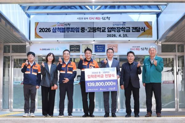 삼척블루파워㈜(대표:강규봉)는 15일 삼척시청에서 지역 중·고등학교 입학생 699명에게 1억3,980만원의 입학 장학금을 전달했다.