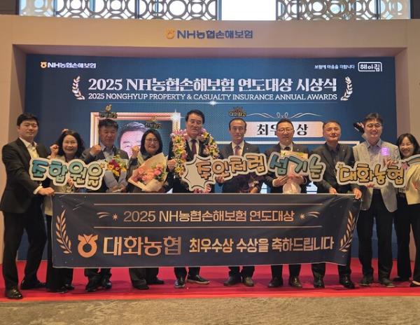 대화농협은 지난 14일 서울 그랜드인터컨티넨탈 서울호텔에서 열린 ‘2025 NH농협손해보험 연도대상’ 시상식에서 최우수상을 수상했다.