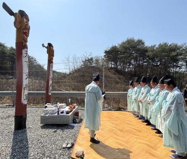 양구문화원 동면분원(분원장:정완섭)은 15일 동면 포사고개 장승지 일원에서 한 해의 무사안녕과 풍년을 기원하는 장승제례를 열었다. 유재희 동면장, 이문기 노인회장을 비롯한 주민 30여명이 참여해 마을의 화합을 기원했다.