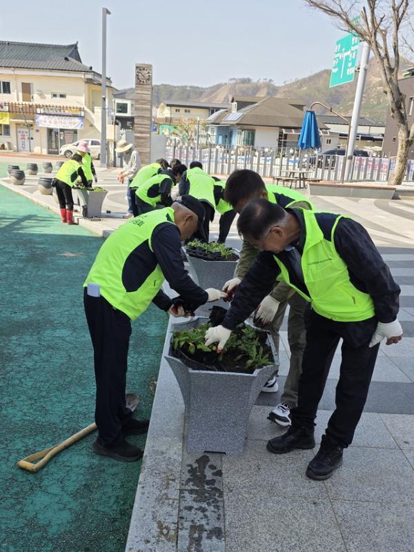 【양구】국토정중앙면 주민자치위원회는 15일 따뜻한 봄을 맞아 지역 환경을 개선하고 아름다운 마을 경관을 조성하기 위한 ‘봄맞이 꽃심기 행사’를 실시했다.