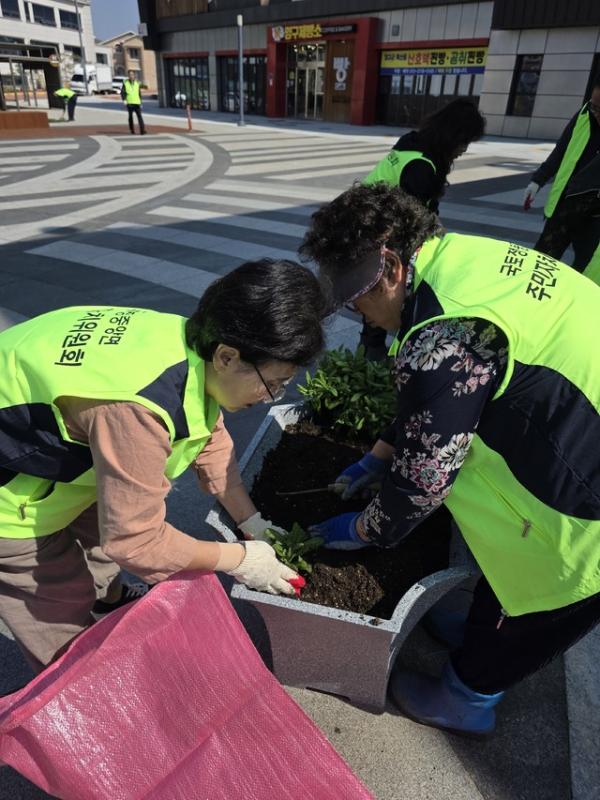 국토정중앙면 주민자치위원회(위원장 박경구)는 15일 따뜻한 봄을 맞아 지역 환경을 개선하고 아름다운 마을 경관을 조성하기 위한 ‘봄맞이 꽃심기 행사’를 실시했다.