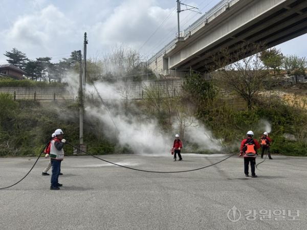 훈련은 산불 발생 시 신속하고 체계적인 대응을 목표로 산불 진화 요령, 진화 장비 사용법, 진화 차량 운용 및 급수 훈련 등 시나리오 점검 등 실전 중심으로 구성됐다.