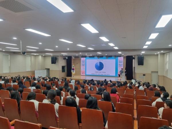 강릉여교(교장:주향숙)는 16일 제46회 장애인날을 즈음해 강릉시장애인가족지원센터와 협력, 교사 및 전교생을 대상으로 한국장애인개발원 신홍윤 장애인 인식개선 전문강사를 초빙해 장애인인식개선교육을 진행했다.