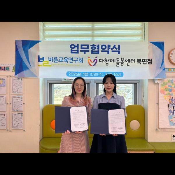 서채윤 북면 다함께돌봄센터장은 “아동기부터 폭력 예방과 인권 존중의 가치를 배우는 것이 무엇보다 중요하다”며 “이번 협약을 계기로 지역사회가 함께 아이들의 안전과 권리 보호에 앞장서겠다”고 말했다.