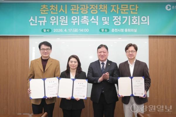 【춘천】춘천시는 지난 17일 시청 중회의실에서 2026년 춘천시 관광정책 자문단 1차 정기회의를 개최, 관광 정책 방향을 점검하고 지역 관광 활성화를 위한 핵심 전략을 집중 논의했다.