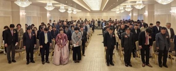 【태백】한국자유총연맹 태백시지회는 지난 17일 태백 한마음신협 3층 회의실에서 태백시지회장 이취임식을 열었다. 이날 이취임식에서는 제4대 박영식 회장이 이임하고 제5대 홍충표 회장이 취임했다.