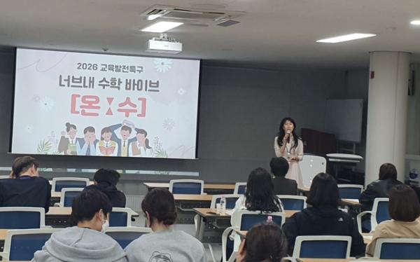 홍천교육지원청(교육장 문선옥)은 17일 청내 대회의실에서 지역 내 중·고등학교 희망 학생과 학부모를 대상으로 ‘너브내 수학 바이브 [온ː수]’ 사업설명회를 개최했다. 이번 설명회는 2026 교육발전특구 사업의 일환으로 지역적 한계를 넘어서는 혁신적인 수학교육 모델을 제시하고 사업에 대한 이해를 높이기 위해 마련됐다.