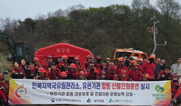 이번 훈련은 민북지역국유림관리소와 양구군청, 양구군산림조합 등 42명이 참여해 실전과 같은 상황을 가정한 대응 훈련이 이뤄졌다. 훈련은 산림에서 발화된 불씨가 건조한 날씨와 강풍으로 확산되는 상황을 설정해 진행됐다. 특히 산불 현장 하단부에 군부대 탄약고가 위치한 상황을 반영해 인명 및 재산 피해 가능성이 큰 복합 재난 상황을 가정했다.