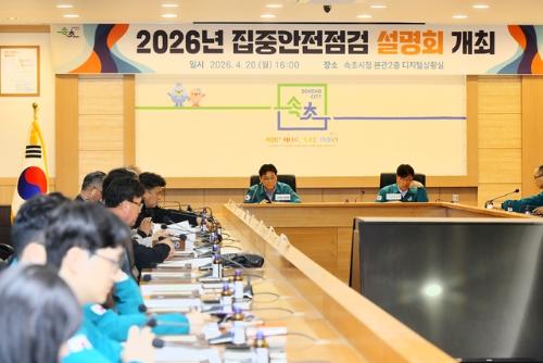 속초시는 20일 시청 디지털상황실에서 배상요 속초시장 권한대행 부시장 및 관계 공무원과 전기·가스·건축 등 분야별 안전관리자문단 등 58명이 참석한 가운데 2026년 집중안전점검 담당자 설명회를 개최했다.