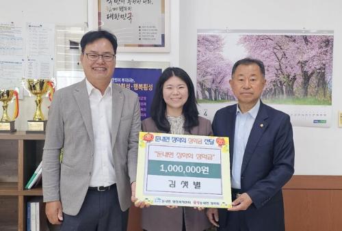 ◇횡성 둔내 출신 김샛별씨가 지난 18일 둔내면장학회에 지역 후배들을 위해 써 달라며 장학금 100만원을 기탁했다.