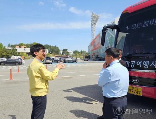 김정수 강원영동병무지청장은 21일 강릉종합운동장에서 집결해 양양으로 가는 병력동원훈련 수송 상황의 여건과 수송차량 및 운전자의 안전수칙 준수 등을 점검했다.