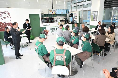 평창지역자활센터 자활근로사업단 ‘백억커피’ 개소식이 22일 대관령면 평창올림픽플라자에서 열렸다. ‘백억커피’는 커피와 음료, 간식을 합리적인 가격에 제공하는 시장진입형 자활사업단이다.