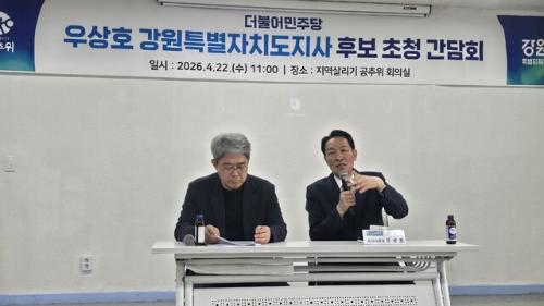 ◇더불어민주당 우상호 강원특별자치도지사 예비후보가 22일 정선 사북읍 지역살리기 공추위 회의실에서 열린 후보초청간담회에 참석해 석탄산업전환지역에 대한 현안과 강원랜드 규제 완화 등에 대한 의견을 청취했다.