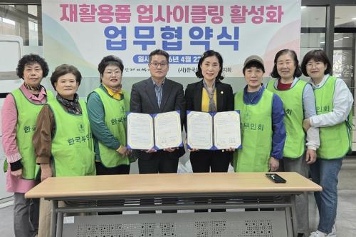 인제지역자활센터(센터장:김기종)와 (사)한국부인회 인제군지회(지회장:김숙자)는 23일 자활센터 회의실에서 지역 내 재활용품 업사이클링 활성화를 위한 업무협약(MOU)을 체결했다.