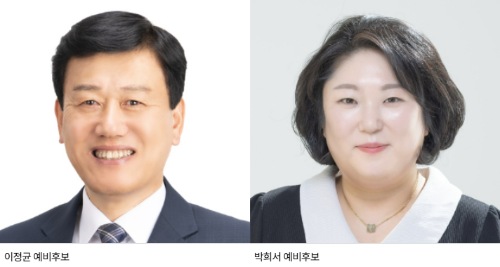 1선거구는 더불어민주당 이정균(62) 전 평창군 경제건설국장과 국민의힘 박희서(38) 전 평창노인복지센터장의 공천이 확정됐다.