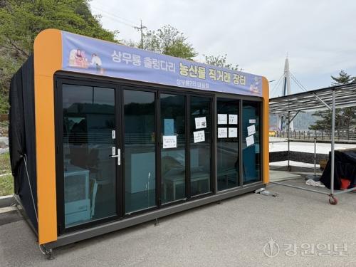 양구 상무룡 출렁다리 출입 통제가 장기화되면서 인근 주민들의 생계 부담이 커지고 있다. 관광객 감소로 임산물 판매가 사실상 중단되며 불만이 확산되는 분위기다. 사진은 상무룡 출렁다리 앞에 굳게 닫힌 농산물 판매대. 사진=이규호기자
