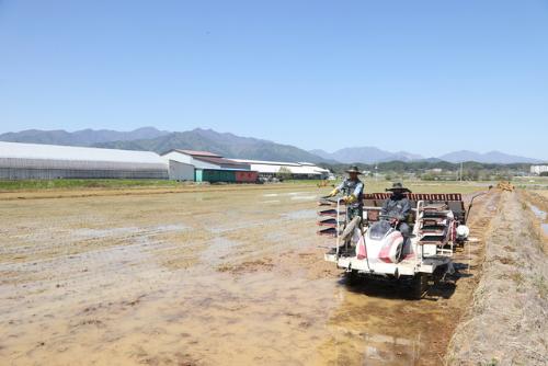 지난 24일 양양군 강현면 김광석씨가 양양지역 올해 첫 모내기를 실시하며 본격적인 영농철의 시작을 알렸다.