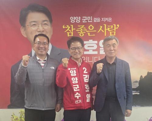 26일 김호열 후보측에 따르면 양양군수 경선 과정에서 경쟁했던 김명선 전 도 행정부지사와 장석삼 전 도의원, 진종호 도의원이 ‘국민의힘 필승 원팀’에 공식 합류했다.
