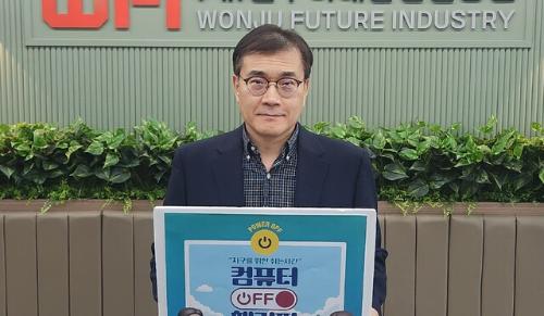 (재)원주미래산업진흥원(원장:조영희)은 지난 24일 ‘지구를 위한 쉬는 시간 컴퓨터 OFF 챌린지’에 참여하고 다음 참여기관으로 원주시탄소중립지원센터와 한국에너지공단 강원지역본부를 지목했다.
