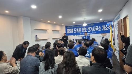 김정래 더불어민주당 도의원 강릉5 후보는 지난 25일 포남2동 선거사무소에서 ‘선거사무소 개소식’을 열었다.