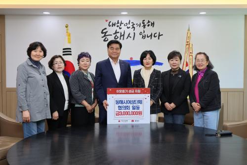 동해시여성단체협의회(회장:김행숙)는 지난 24일 동해시청을 방문, ‘한부모 가정돕기 일일찻집’의 수익금으로 마련한 300만원을 기탁했다.