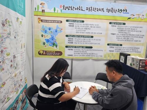 상담 부스에서는 신규 농업인 영농기반 조성사업, 귀농 농업창업 및 주택 구입 융자 지원 등 초기 정착 부담을 줄일 수 있는 제도를 1대1로 안내했다. 또 고산지 기후에서 생산된 지역 농특산물과 농가 가공제품을 전시해 정선 농업의 경쟁력과 소득 창출 가능성을 알렸다.