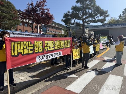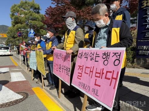 주민들 양구군청 앞에서 성명서 발표해 행정 비판