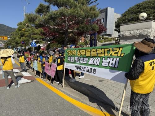 【양구】속보=상무룡 출렁다리 출입 통제가 장기화되면서 인근 주민들의 생계 부담이 커지고 있는(본보 지난 24일자 5면 보도) 가운데 주민들이 집단 반발에 나섰다.