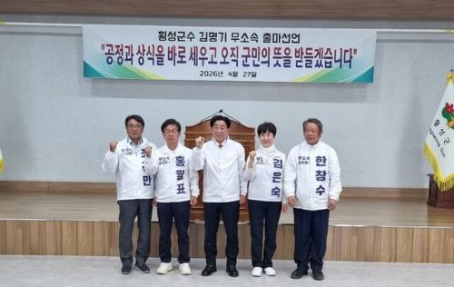 김 군수의 출마 선언으로 6·3 지선 횡성군수 선거 구도는 지난해 12월 일찌감치 출마를 선언한 더불어민주당 장신상 예비후보와 지난 21일 국민의힘 최종경선에서 승리한 임광식 예비후보 간 3자 경쟁구도로 치러지게 됐다.