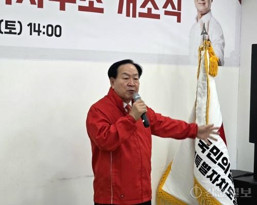 ◇한기호(춘천-철원-화천-양구을) 국회의원이 지난 25일 정광열 국민의힘 춘천시장 후보 선거사무소 개소식에 참석해 발언하고 있다.