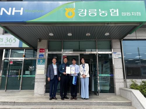 강릉경찰서(서장:변상범)는 27일 강릉농협 정동지점을 찾아 보이스피싱 피해를 예방한 은행원에게 감사장을 전달했다. 해당 은행원은 지난 20일 수사기관 사칭 전화에 속아 적금을 해지하고 현금 1,800만원을 인출하려던 고객의 행동을 의심하고 인근 파출소로 신고, 피해를 예방했다.
