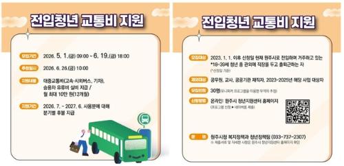 [원주시뉴스] 원주시 전입청년 교통비 지원