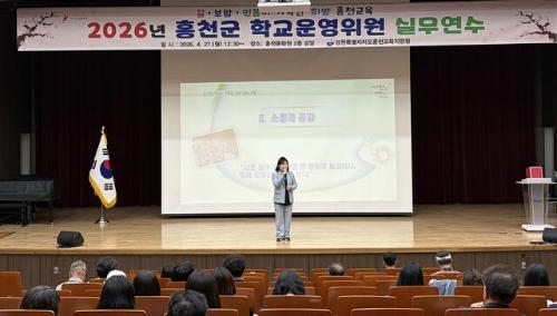 홍천교육지원청(교육장:문선옥)은 27일 홍천문화원에서 일선 학교 운영 위원들을 대상으로 ‘2026년 홍천군 학교운영위원 실무연수’를 개최했다. 이날 문선옥 교육장은 학교운영위원회의 이해, 교육공동체와의 공감·소통을 주제로 강연했다.