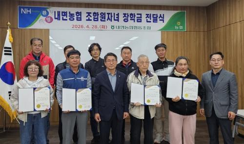 홍천 내면농협(조합장:권영대)은 28일 회의실에서 조합원 자녀 18명에게 장학금을 각각 150만원씩 전달했다.