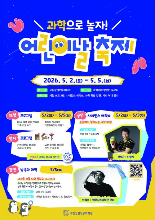 국립강원전문과학관은 다음달 2~5일 ‘과학으로 놀자! 어린이날 축제’를 개최한다.