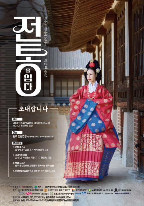 강원특별자치도문화예술모델교육협회는 다음달 9일 낮 12시 강원감영 특설무대에서 원주패션페스티벌 ‘2026 원주시 강원감영에서 보내는 특별한 봄날, 전통을 입다’를 한다.