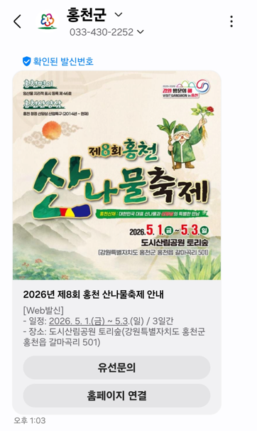 ◇홍천군 문자 메시지 서비스 개선