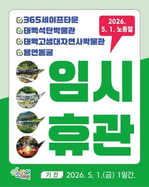【태백】태백지역 주요 관광시설이 다음달 1일 근로자의 날을 맞아 임시 휴관한다.