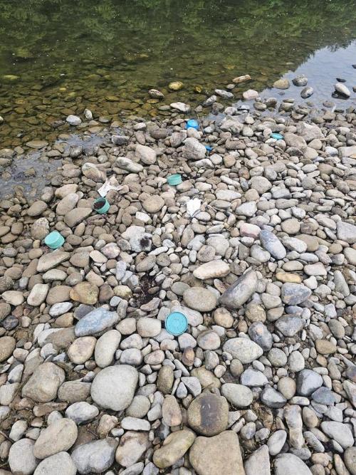 A씨가 공개한 사진을 보면 강가에 음료의 플라스틱 병 뚜껑 여러 개가 정리가 안 된 채로 버려져 있었다. 더구나 강가 바로 옆에 버려져 있어 강물 수위가 조금만 높아져도 강으로 흘러들어갈 위험이 존재했다.