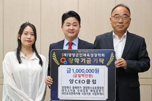 양CEO클럽(회장:김성재)은 29일 양양군청을 방문해 탁동수 양양군수권한대행에게 인재육성장학기금 100만원을 전달했다.