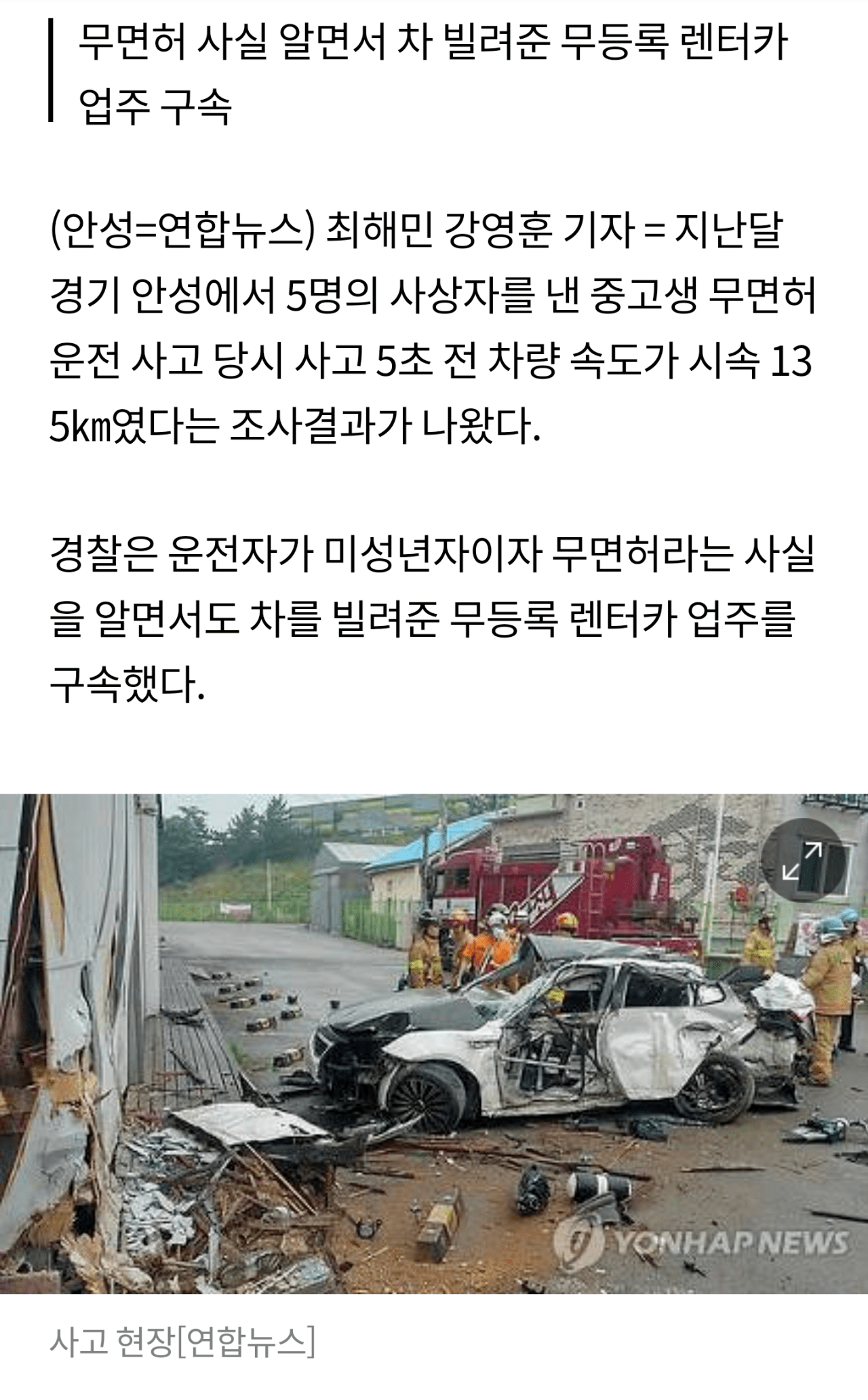 다섯명의 사상자를 낸 중고생 렌트카 사고