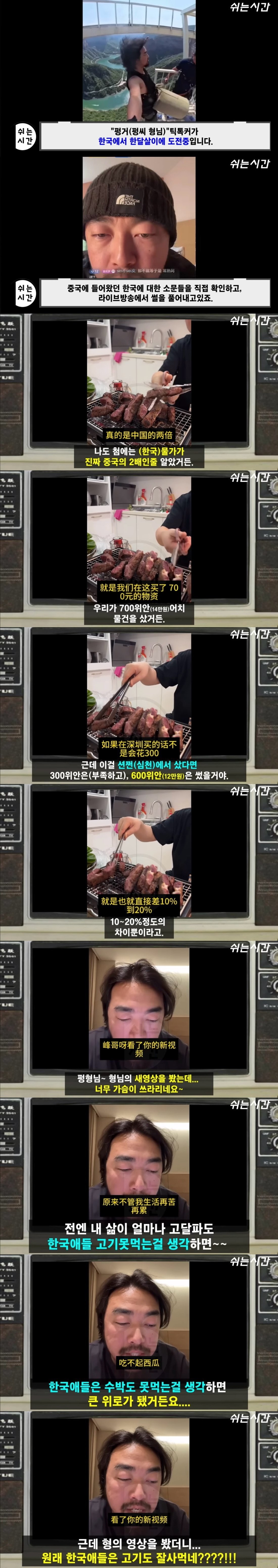 한국인들이 비싸서 고기 못 사 먹는지 확인하러 온 중국인