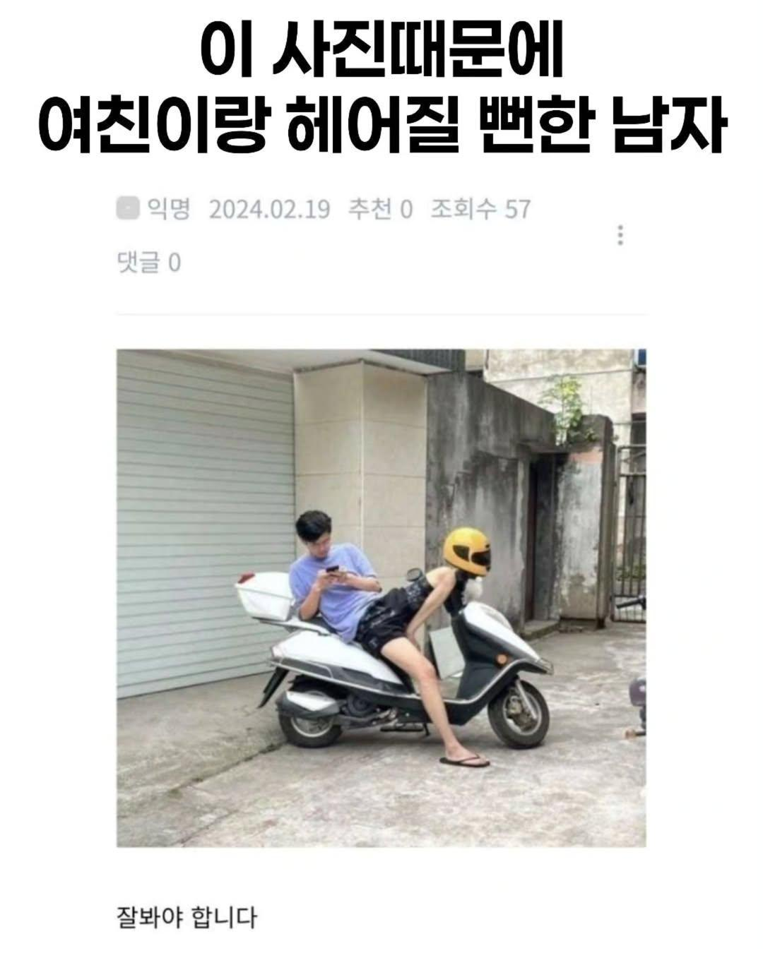 사진 한장으로 여친이랑 헤어질뻔한 남자