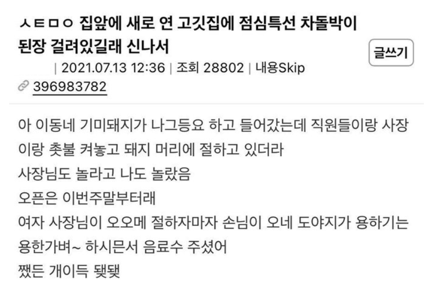 유머 - 집 앞에 새로 연 고깃집에 점심특선 보고 신나서57분전