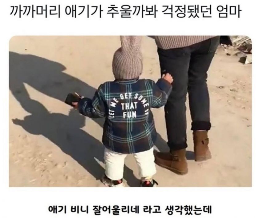 까까머리 애기가 추울까봐 걱정됐던 엄마