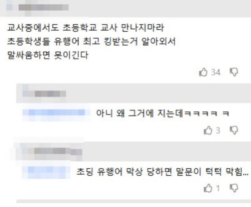 초딩이랑 싸우는거나 마찬가지인데 무논리, 막무가내에 초딩 유행어까지 어찌 이겨 ㅋㅋㅋ
