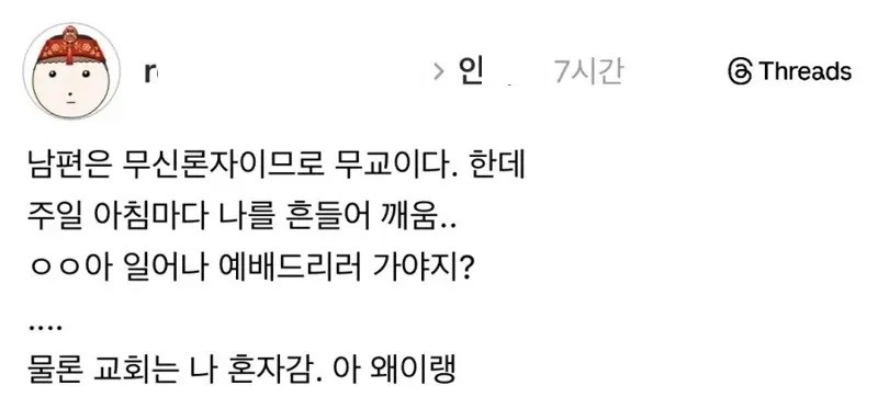 무교 남편과 결혼한 교회 다니는 아내