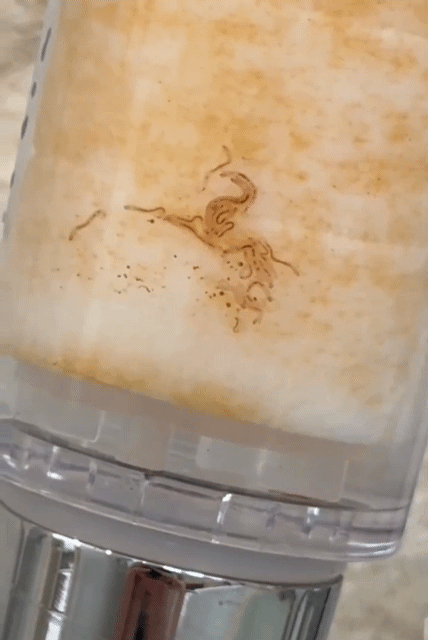 샤워 필터 안에서 기생충이 살아 움직임