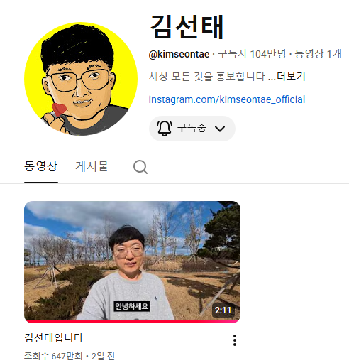 이틀만에 충주시 제끼고 3일만에 100만찍은 충주맨