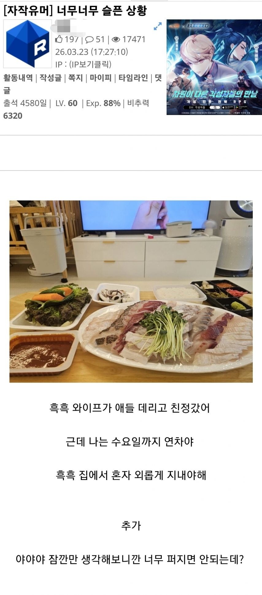 어느 유부남의 너무너무 슬픈 월요일 상황